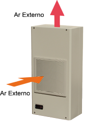 ♦ Defletor na saída de ar frio otimiza o fluxo de ar no interior do painel elétrico, aumentando a eficiência na troca de calor.
